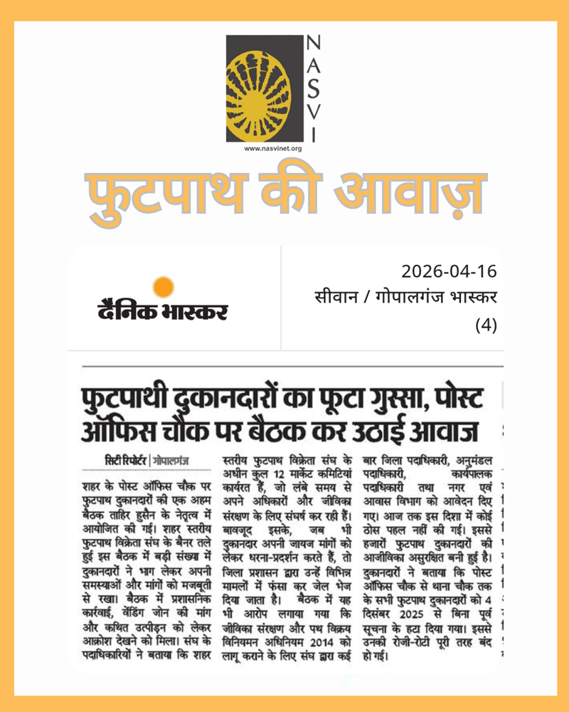 NASVI stands in solidarity with the street vendors of Gopalganj and their fight for dignity, protection, and the right to livelihood.